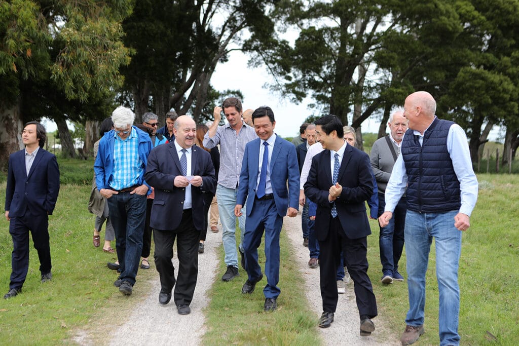 Durante la visita estuvo acompañado por el secretario de Vinculación Tecnológica, Javier Díaz; el prosecretario de Planeamiento, Obras y Servicios, Agustín Olivieri; los decanos de las Facultades de Veterinarias y Ciencias Agrarias, Marcelo Pecoraro y Ricardo Andreau, respectivamente; el decano de Ingeniería, Marcos Actis; el director de Infraestructura y Redes, Pedro Brisson; el vicepresidente de la empresa adjudicataria de la licitación, PowerChina Ltd en Argentina, Hao Jianhui; y el presidente del banco ICBC Argentina, Zhang Junguo. También estuvieron presentes el Jefe de Gabinete y el director de Producción de la Municipalidad de Magdalena, Esteban Castiglia y Federico Sánchez.