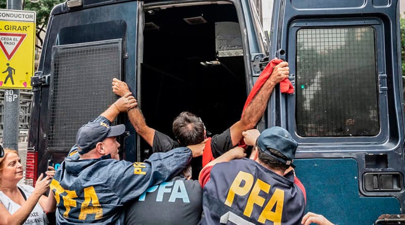 Otro miércoles donde se repite un operativo policial desmedido y se reprime al colectivo movilizado de trabajadores jubilados y columnas de movimientos sociales, políticos y de diferentes ramas y gremios que acompañan y encabezan la lucha. La policía detuvo a cuatro personas, entre ellos, el Padre Paco de Opción por Los Pobres, quien fue liberado horas más tarde. También, hubo una salvaje golpiza a un jubilado que terminó en convulsiones. Se degradan nuestras condiciones de vida por el plan económico de los capitales más concentrados y a la fuerza nos quieren imponer sus condiciones.