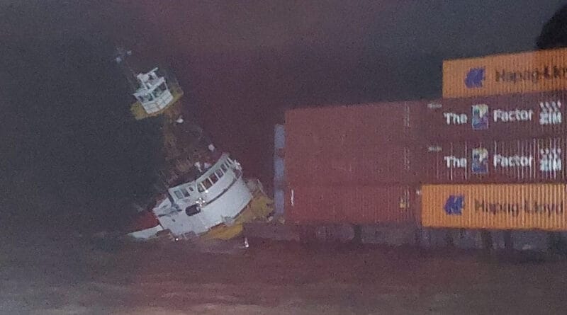 Actualmente, el “Papu Mar” permanece parcialmente hundido, aunque no representa un peligro para la navegación en la ruta principal de buques de ultramar. La barcaza, que transporta 153 contenedores, continúa unida al remolcador y no se registraron pérdidas de carga.