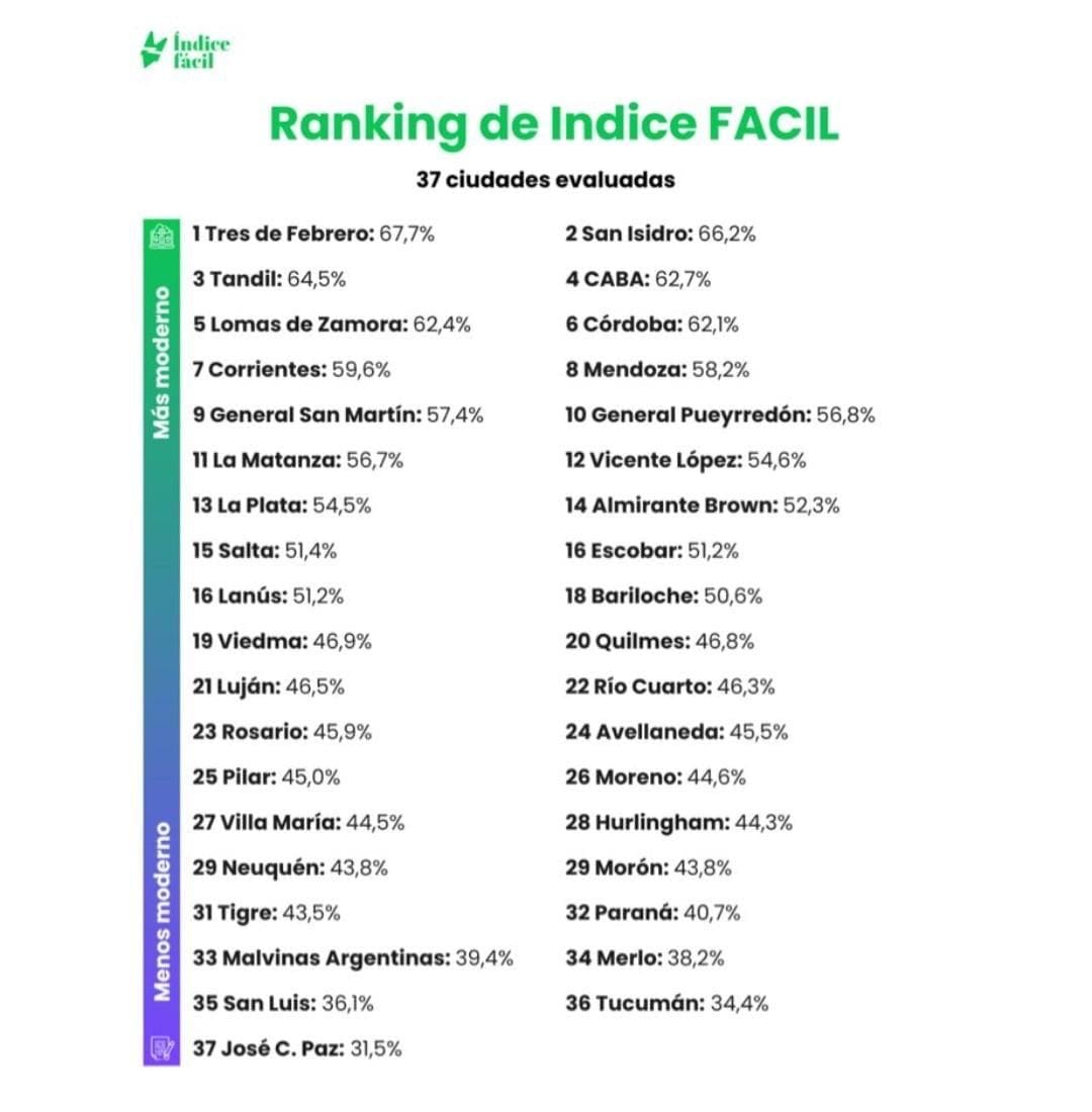 San Isidro escaló hasta el segundo lugar del ranking nacional del Índice FÁCIL, elaborado por el instituto IDESA, con un puntaje de 66,2%. El distrito se ubica solo por detrás de Tres de Febrero, consolidándose como referente en simplificación administrativa, digitalización y mejora de la experiencia ciudadana.