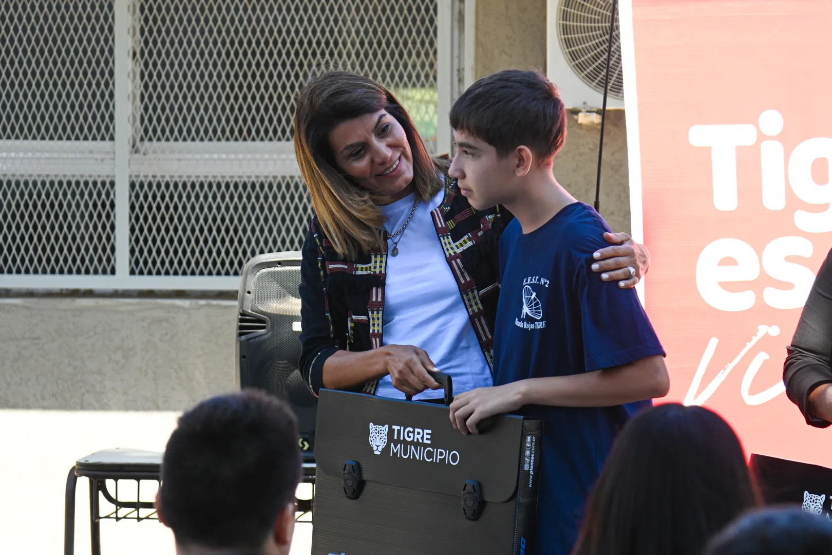 Autoridades del Municipio de Tigre encabezadas por la secretaria de Educación y Promoción Social, Gisela Zamora, participaron de la entrega de 160 kits de dibujo a estudiantes de la Escuela Técnica N° 2 de Ricardo Rojas.