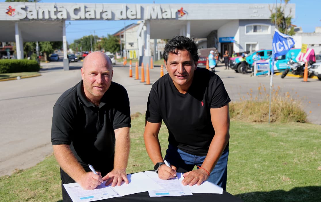 En Santa Clara del Mar, Marinucci estuvo acompañado por el intendente del partido de Mar Chiquita, Walter Wischnivetzky, con quien firmó un convenio de préstamo de uso con el municipio para la entrega de dos vehículos destinados a fortalecer las tareas de control y prevención en materia de seguridad vial en el distrito costero.